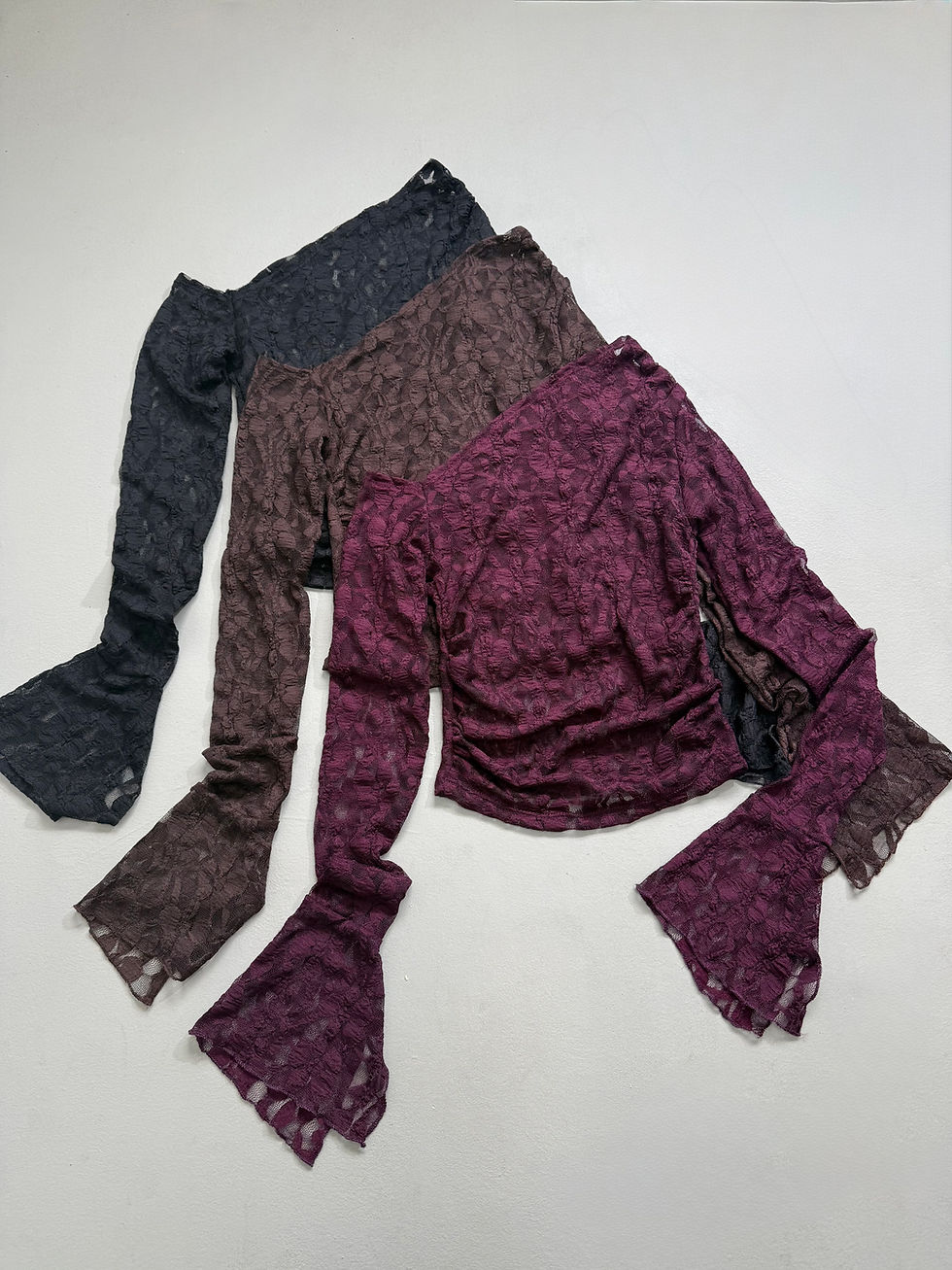 Top microfibra off shoulders manga encaje